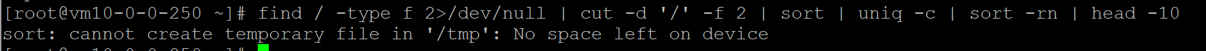 使用/tmp目录定位inode占用源,如下图所示,若/tmp目录无法创建临时文件,可以使用 /dev/shm 作为临时目录。