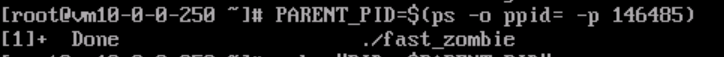 PARENT_PID=$(ps -o ppid= -p 146485) # 使用第一个僵尸进程如上所示,父进程 ./fast_zombie已经终止。