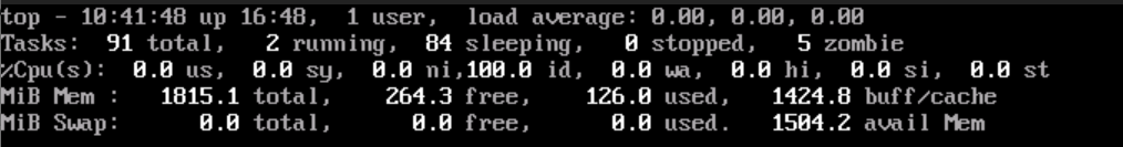 再次执行top,结果如下,发现僵尸进程为0。