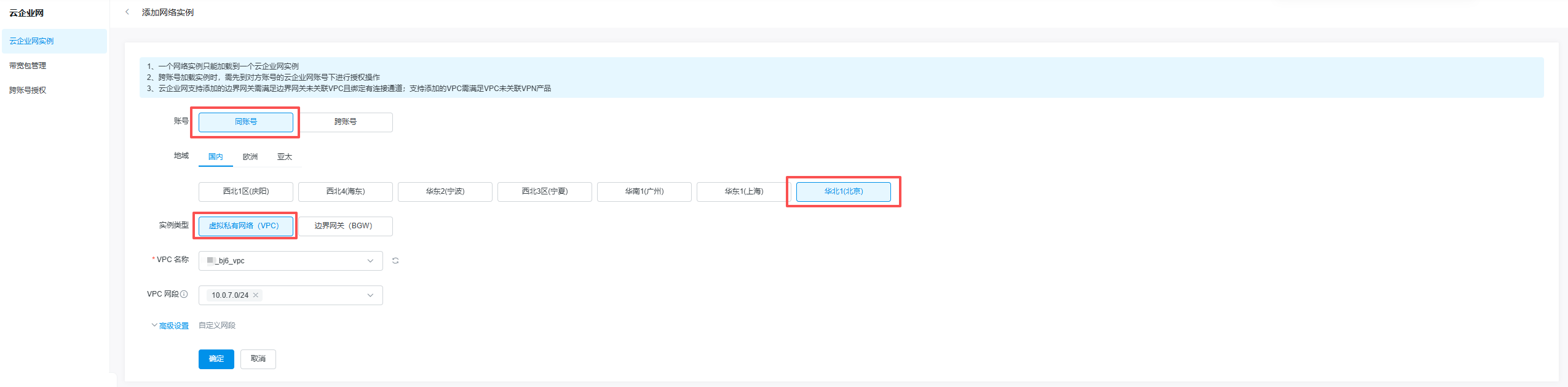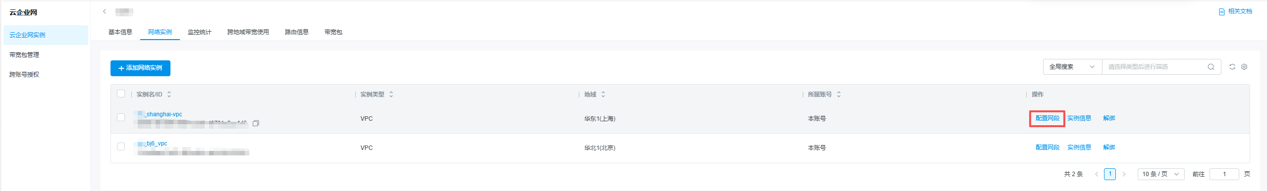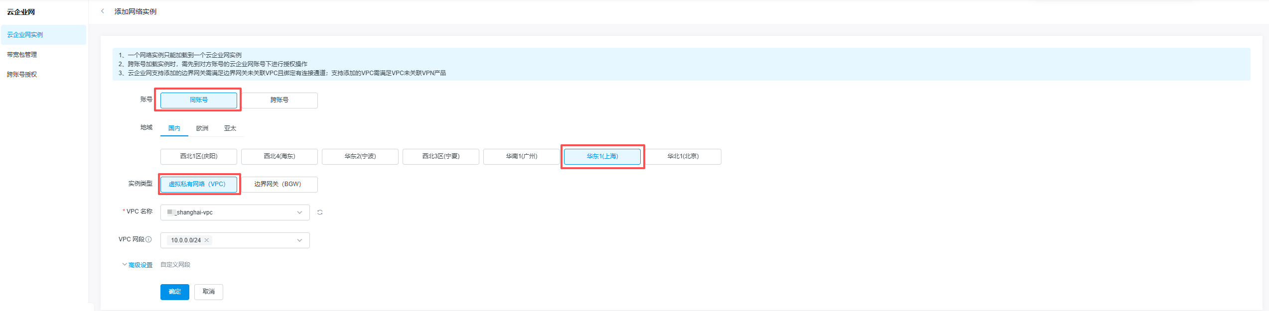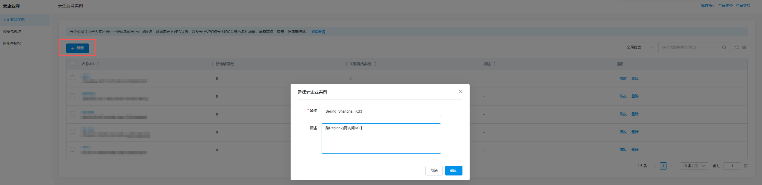 进入云企业网控制台界面,点击“新建”创建云企业网实例