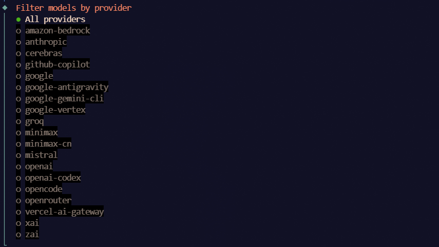 Filter models by provider | 是否仅显示选定提供商的模型,避免选择不支持的模型。 | 选择 "All providers"。 |