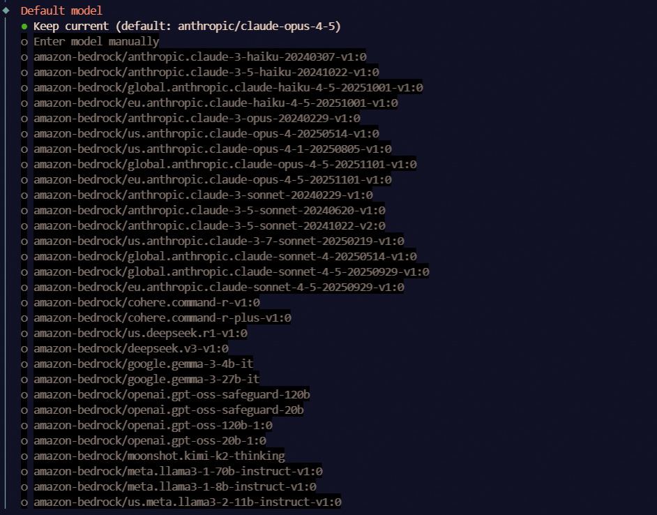 Default model | 设置 Moltbot 启动后默认使用的模型。 | 使用默认配置。 |