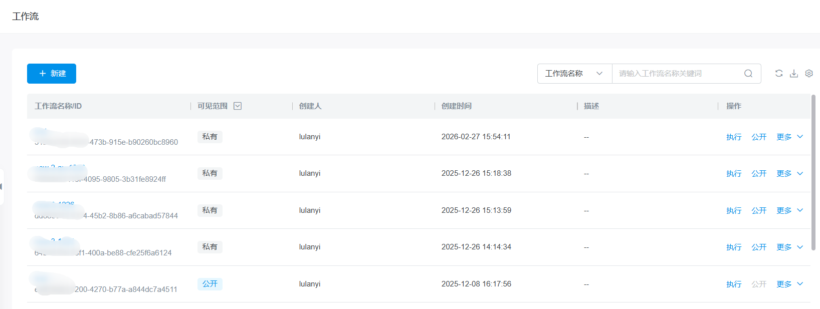 登录星流控制台,点击链接,或通过左侧导航栏【公共资产管理】中【工作流】进入列表页面;