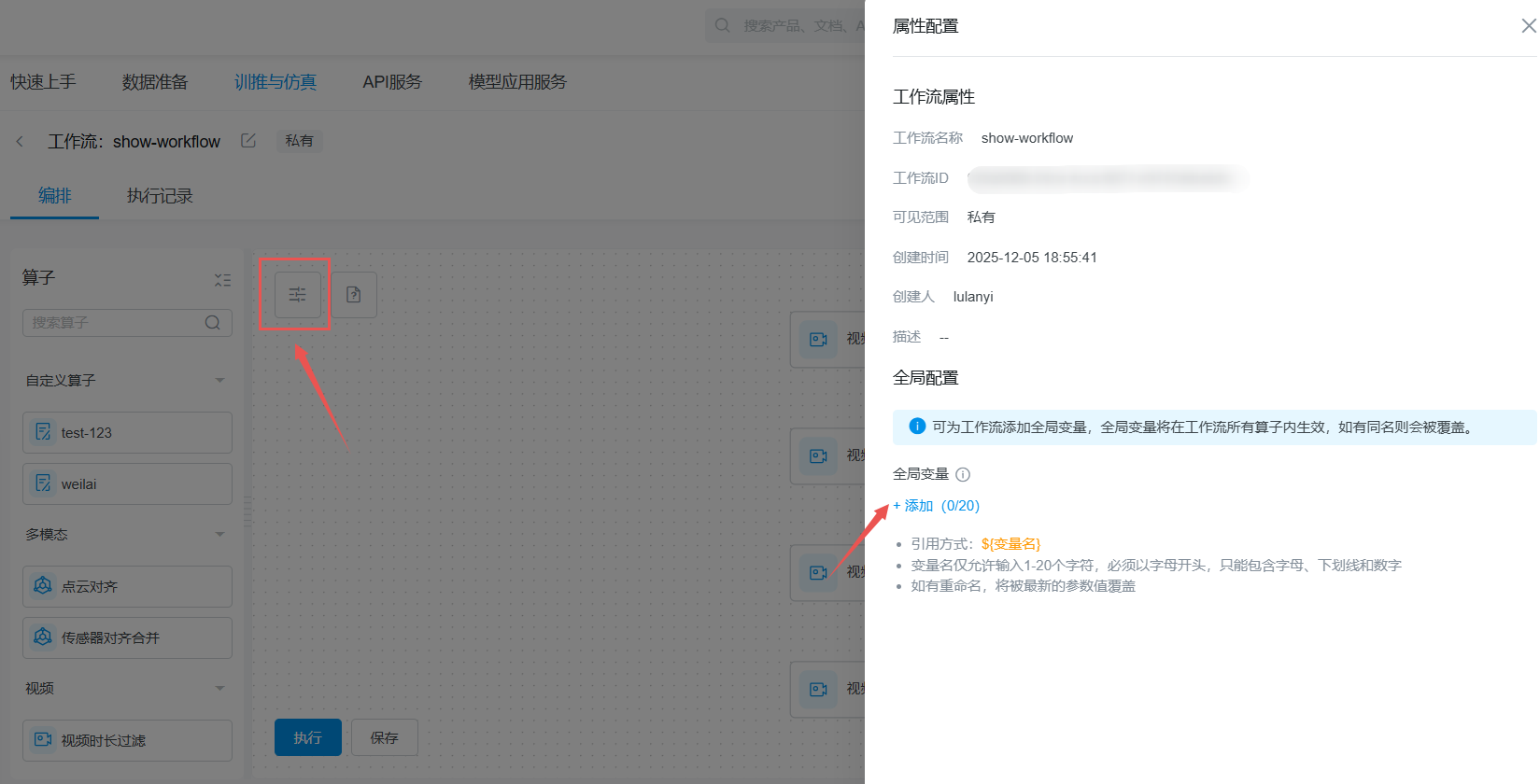点击画布左上角按钮可配置全局参数