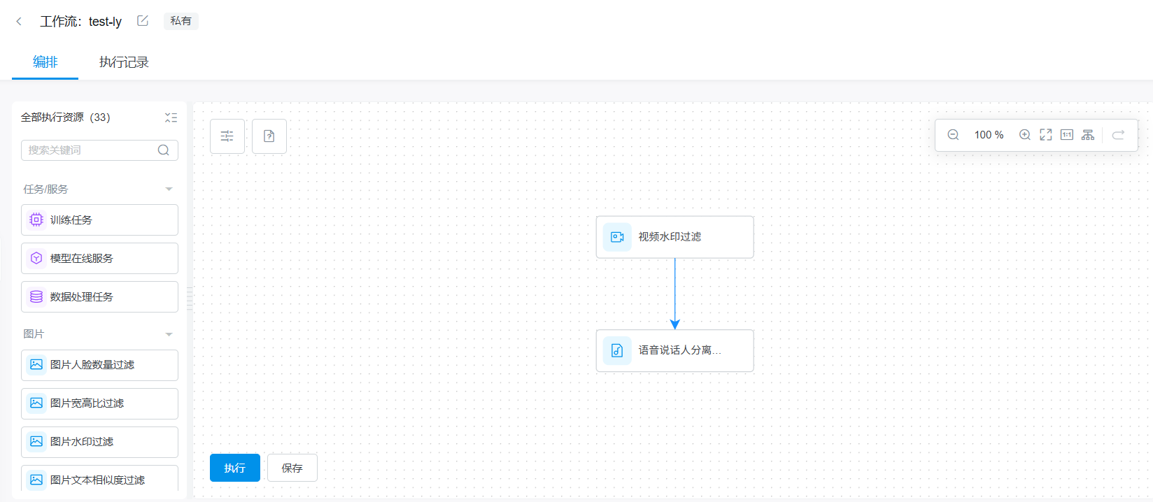 所有执行算子或者任务、服务配置好之后,点击保存,工作流创建完成。