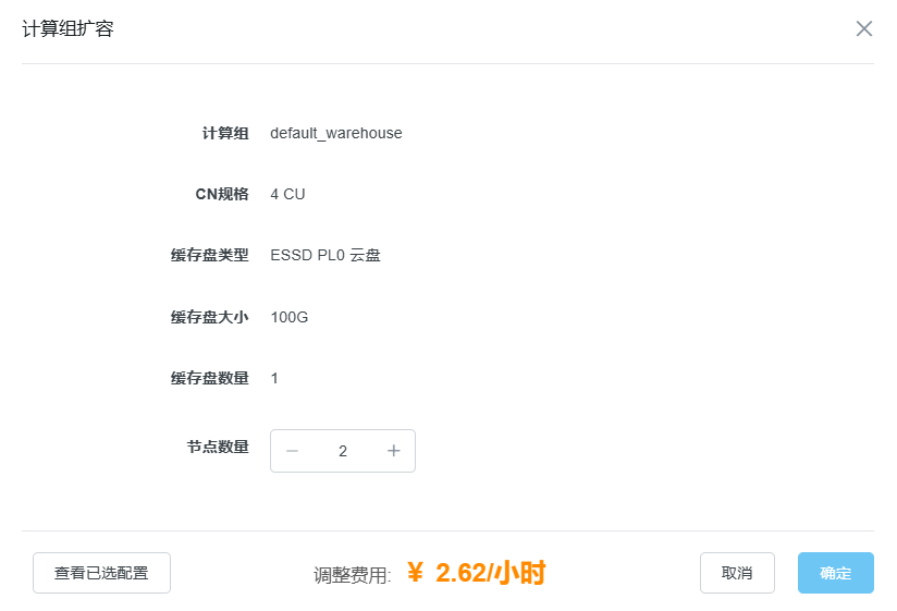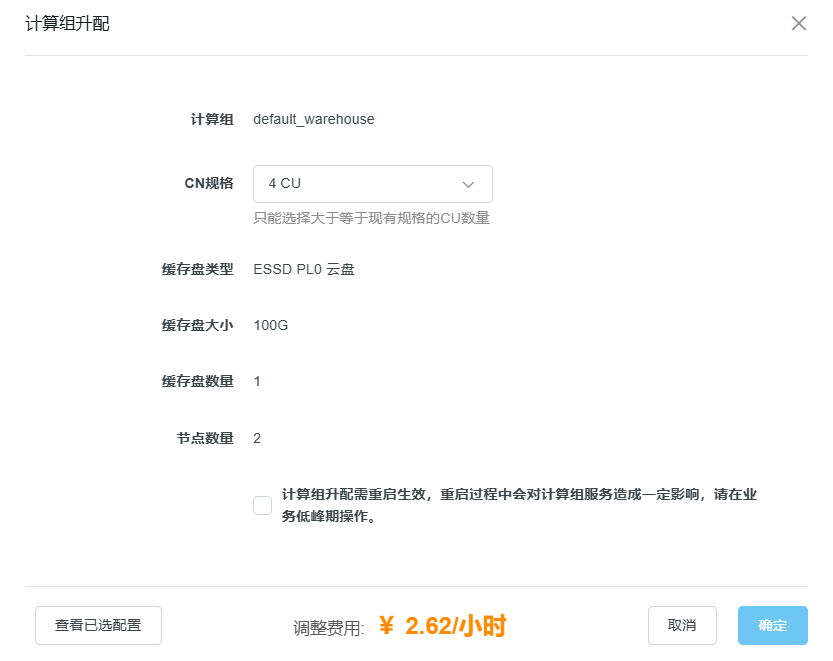 计算组的资源配置无法满足您的业务需求,您可以变更CN节点的资源配置,以满足业务需求。本文介绍如何扩缩容计算组、升降配计算组、和配置计算组磁盘。