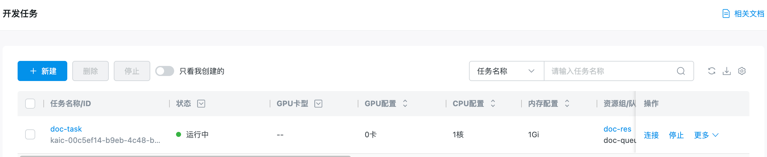 资源配置:本示例中选择 GPU 资源的机型或集群,以便后续操作。