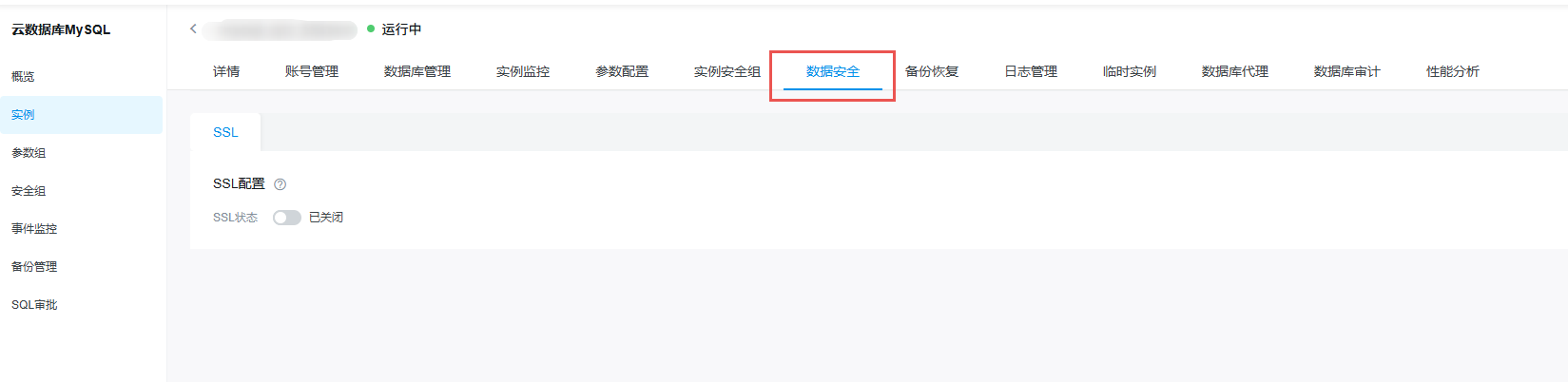 在数据安全页面顶部,默认选中SSL页签。