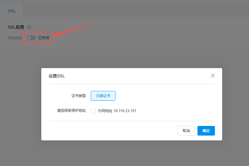 若您在开启 SSL 加密后更换加密的内 / 外网地址,需重新设置 SSL 加密,但您仍可以通过非加密方式连接更换后的地址。