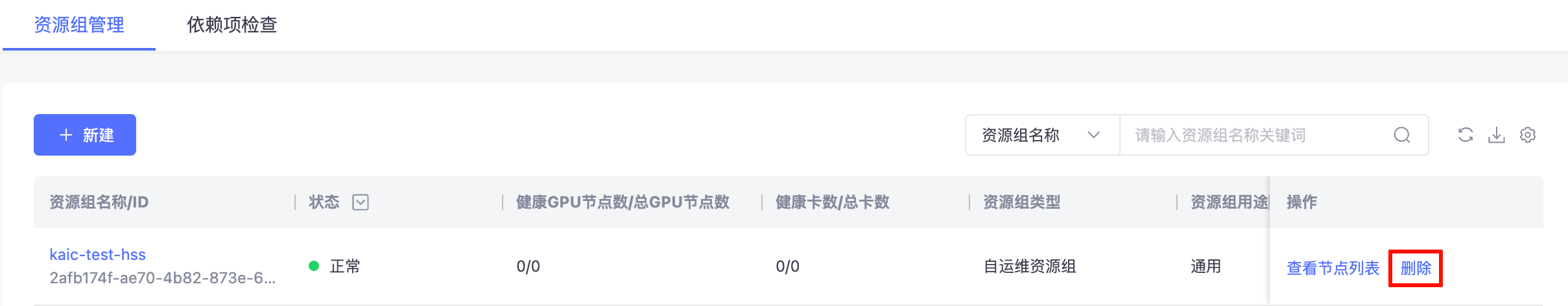 1. 在资源组管理页面,点击指定资源名称/ID,进入详情页面。