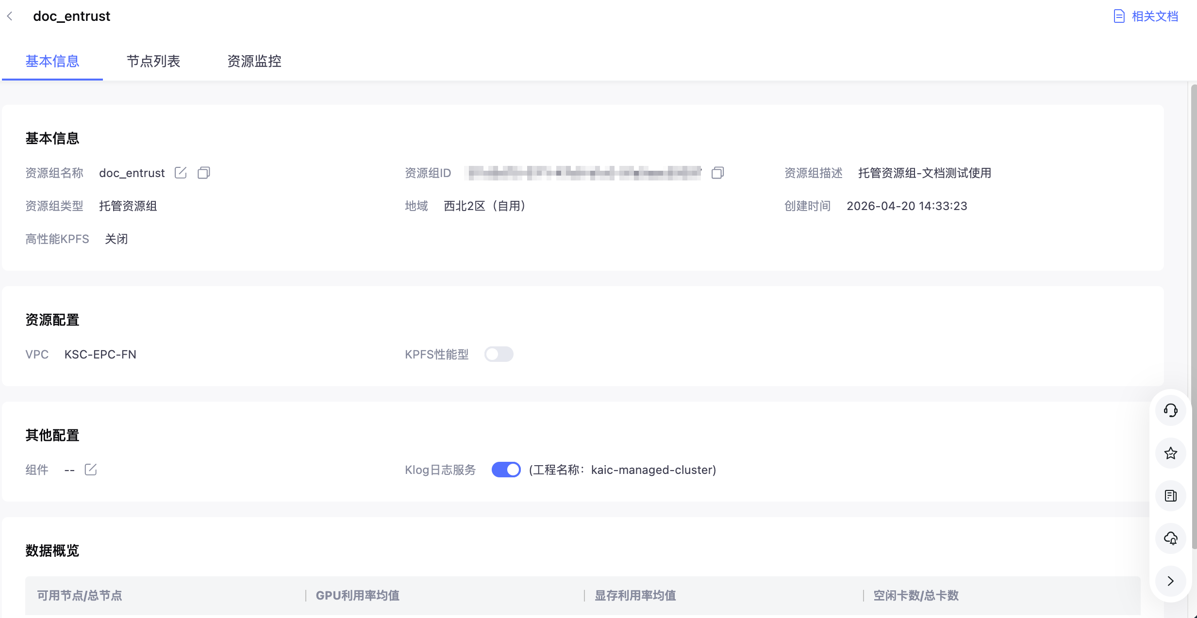 1. 在资源组管理页面,点击指定资源名称/ID,进入基本信息页面。