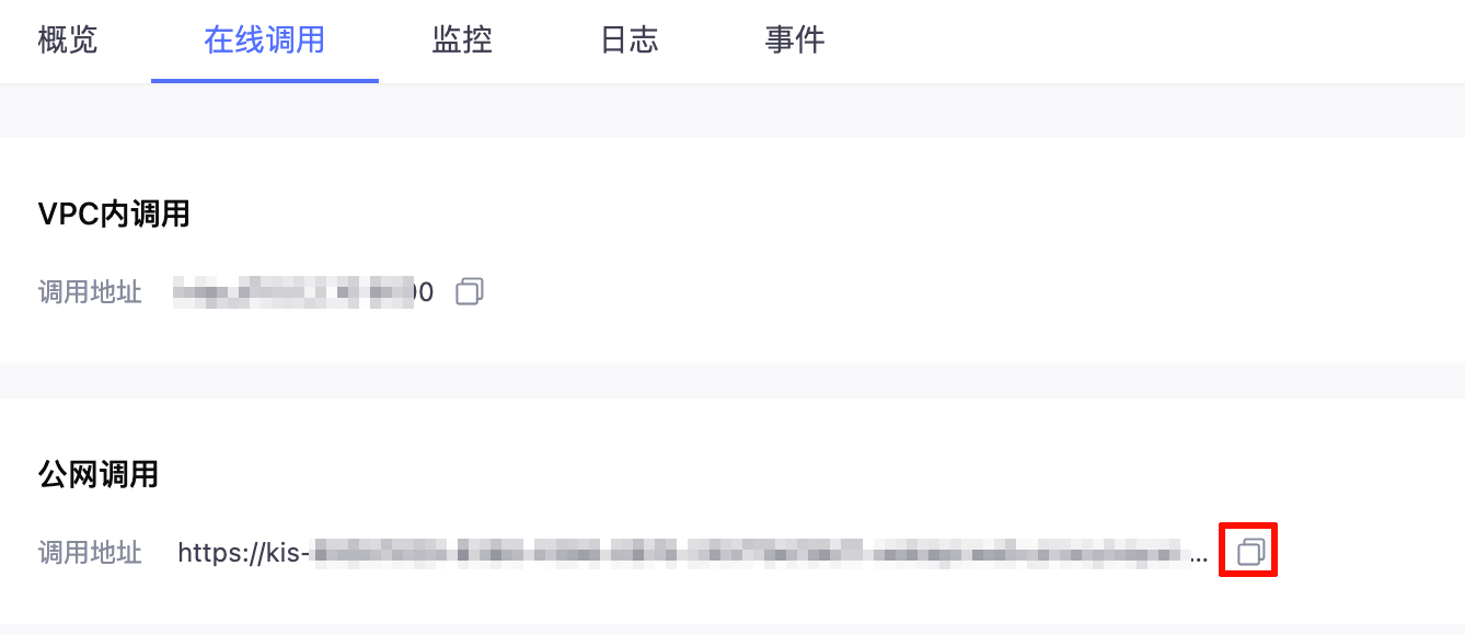 }待在线调试成功后,在公网调用区域,查看并复制相应调用地址。