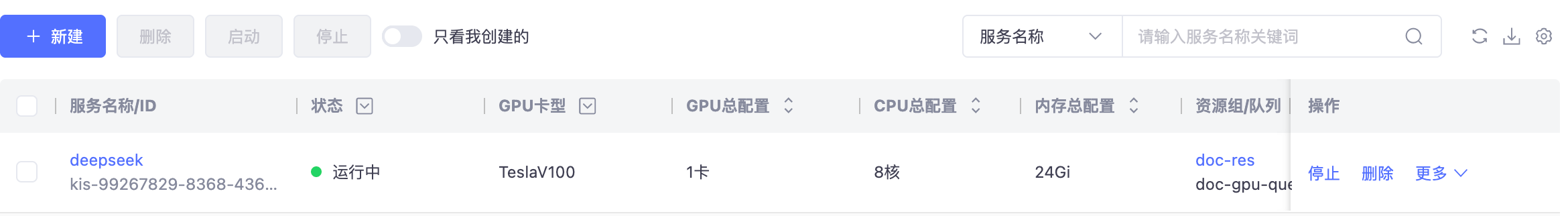 在模型在线服务列表页面,点击待调用的服务名称/ID。