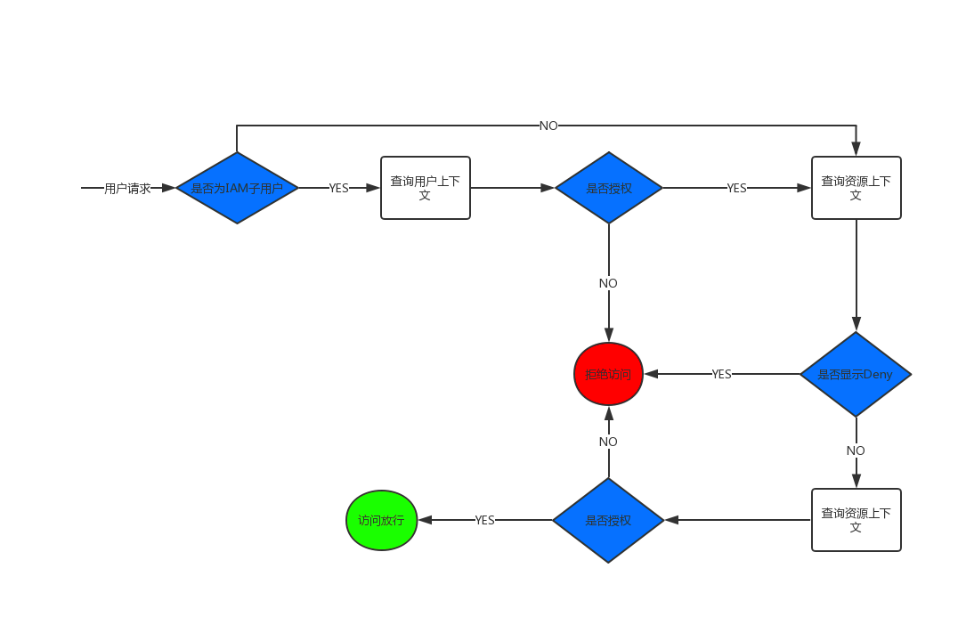 用户上下文:如果请求者是IAM子用户,则该子用户必须拥有来自其所属的父账户的授权,同时KS3还要判断其父账户是否也拥有对应的权利。