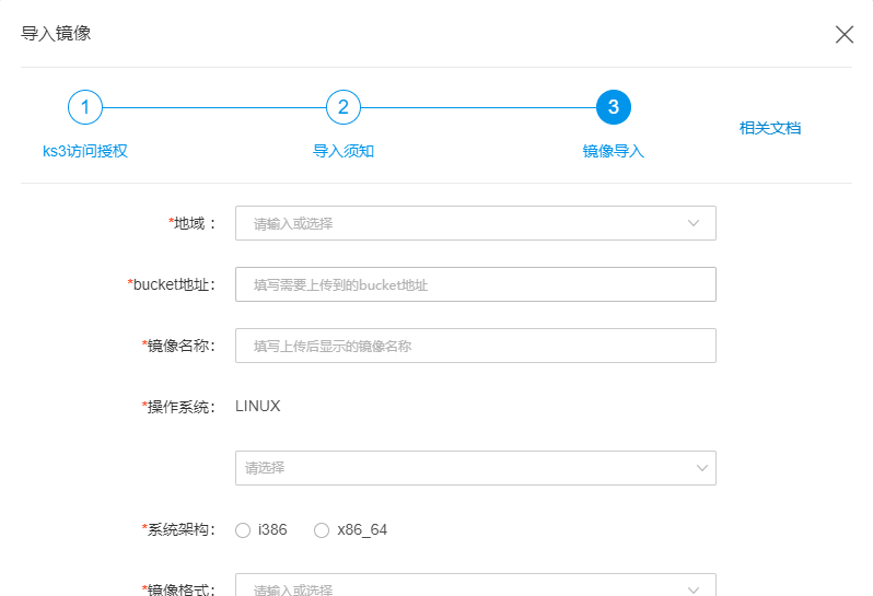 用户开通KS3服务,创建目标地域下的存储空间(bucket),并将制作好的镜像上传到存储空间。