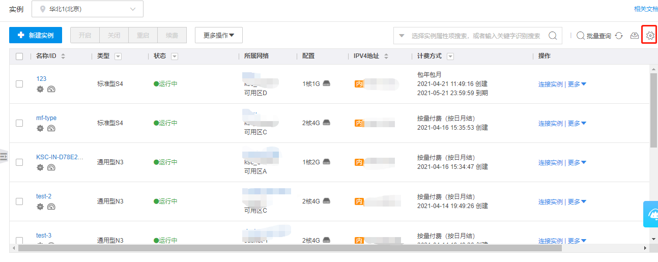 导出实例:单击列表右上方的导出图标,将当前实例列表导出为.csv文件,便于在本地查看和统计。