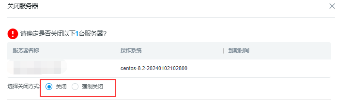 “强制关闭”功能效果相当于关闭本地计算机的电源,仅在云服务器无法正常关机时使用。