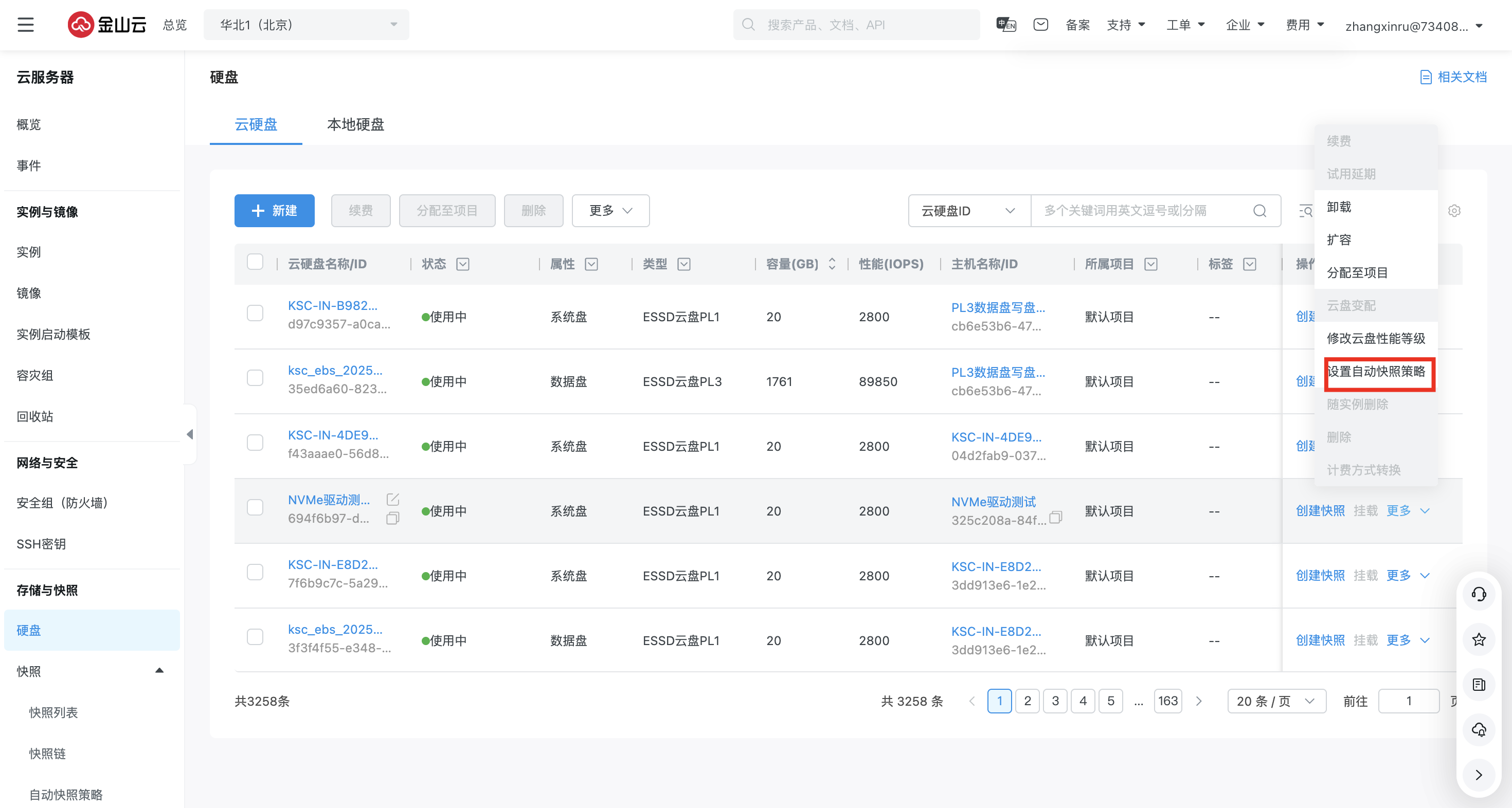 在左侧导航栏中,选择硬盘 > 云硬盘或本地硬盘。