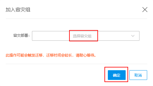 在加入容灾组页面中,选择想要加入的容灾组,并单击确定。