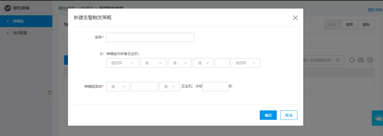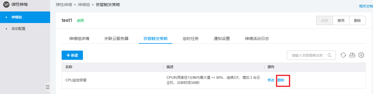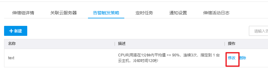 在上方的导航条中选择告警触发策略,在该页面管理与伸缩组相关联的告警触发策略。