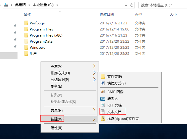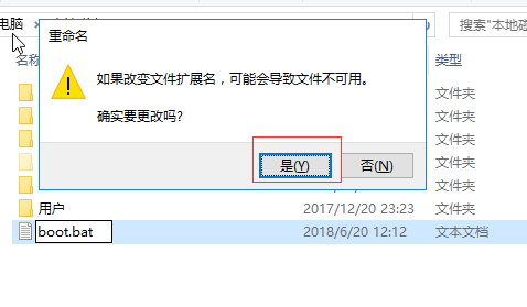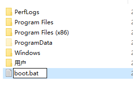 2.右键创建C:\boot.bat文件,内容为空,后缀名为”.bat”,之后可以关闭文件扩展名。