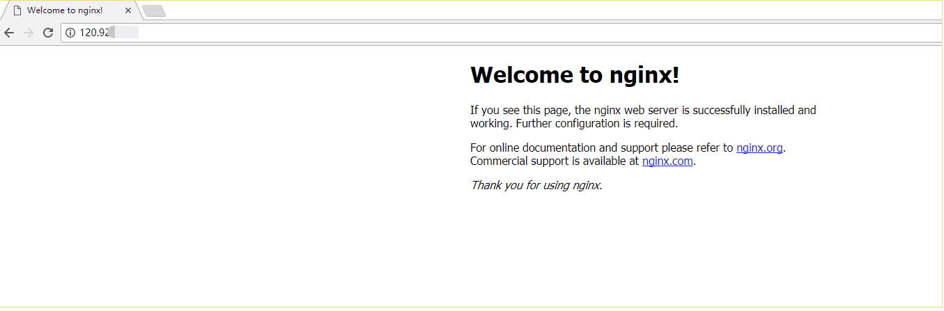 my-nginx LoadBalancer 10.254.xx.xx 120.92.xx.xx 80:31084/TCP 8s通过访问120.92.xx.xx这个链接可以看到创建的服务如图所示: