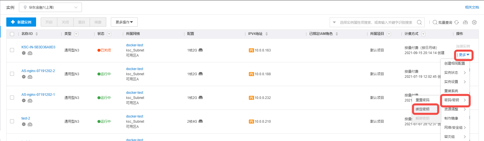在目标云服务器对应的操作列中,选择更多 > 密码/密钥 > 绑定密钥。