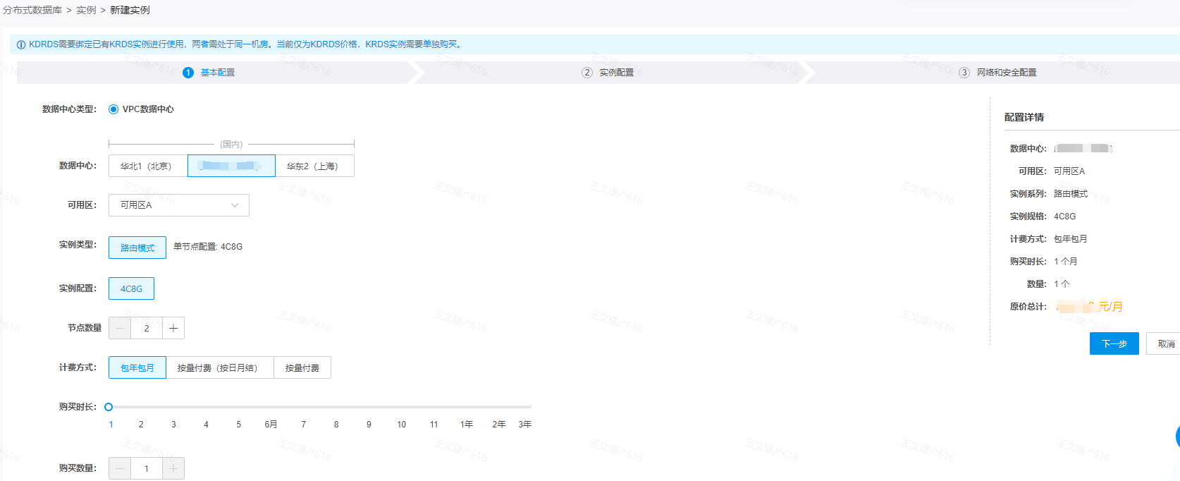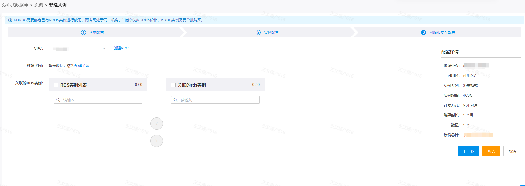 步骤一:在KDRDS控制台页面,点击“实例”->“新建实例”,如图所示: