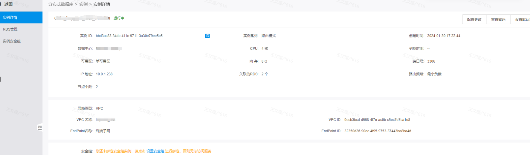 通过该页面,可以查看KDRDS实例的基础配置、网络等相关信息。
