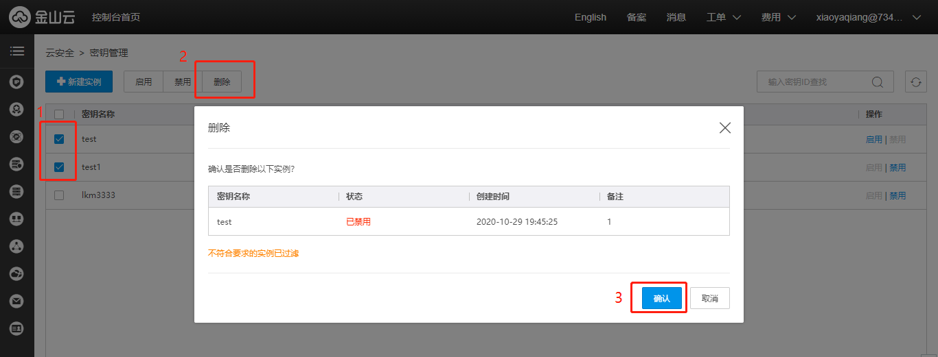 一旦您删除密钥后,金山云不会帮您保存您的主密钥,既彻底删除;