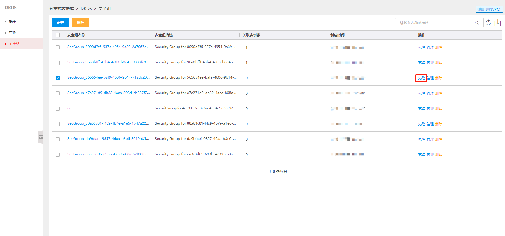 在KDRDS“安全组”页,点击目标安全组的“克隆”