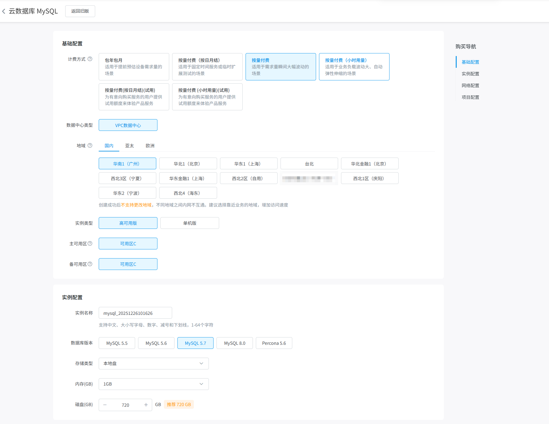 数据中心 | - 实例所在的地理位置,且购买后无法更换; |