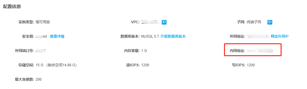 请将hostname和port替换为目标MySQL数据库实例的内网地址,将username替换为默认的用户名admin,回车后,输入MySQL密码。