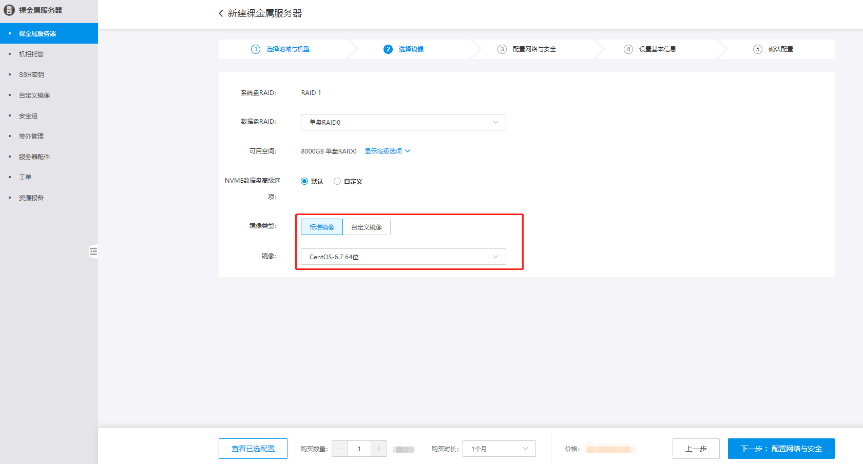 2. 单击裸金属服务器,进入新建裸金属服务器页面。