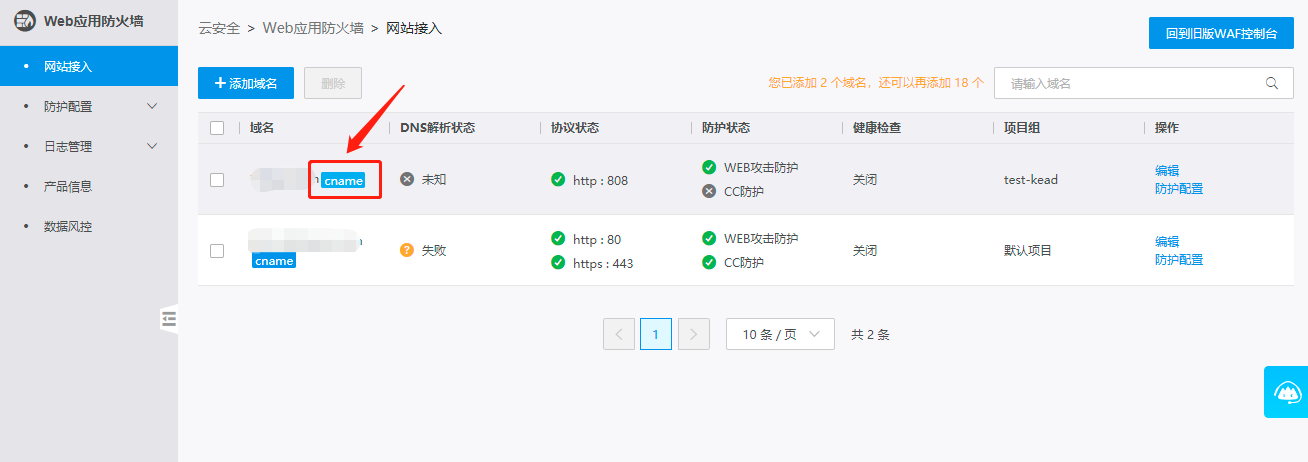 已在Web应用防火墙(WAF)中添加域名,但还未修改域名的DNS解析(将网站域名解析到WAF)时,为了保证业务的稳定性,建议您在修改DNS解析前在本地验证配置是否已生效。