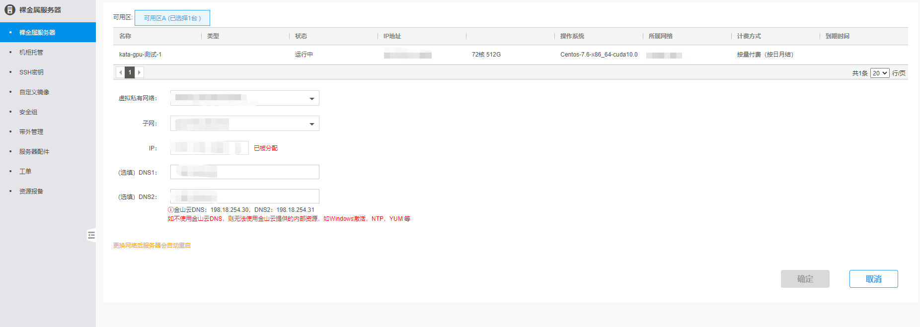 注意: 仅支持为未绑定弹性IP的GPU裸金属服务器更换网络。