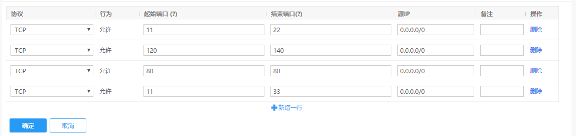 新增一行:单击“新增一行”为列表增加新的规则。