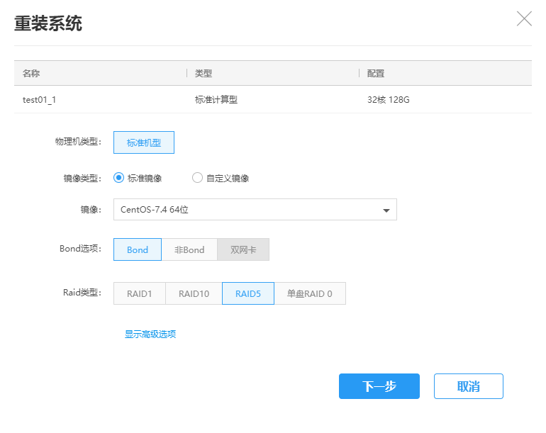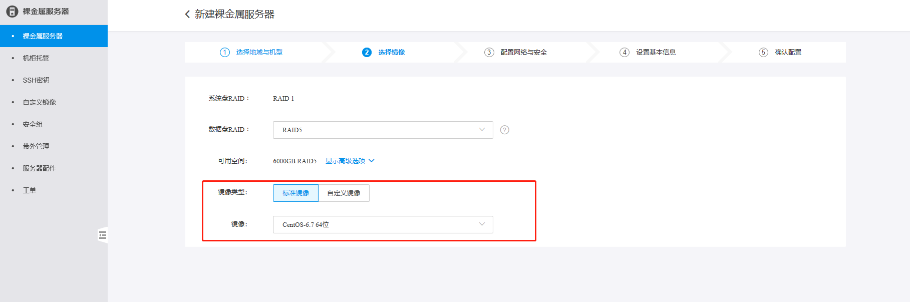 单击裸金属服务器,进入新建裸金属服务器页面。