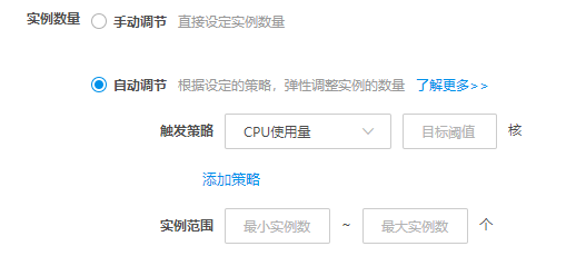 实例范围:请根据实际需求进行选择,实例数量会在设定的范围内自动调节,不会超出该设定范围。