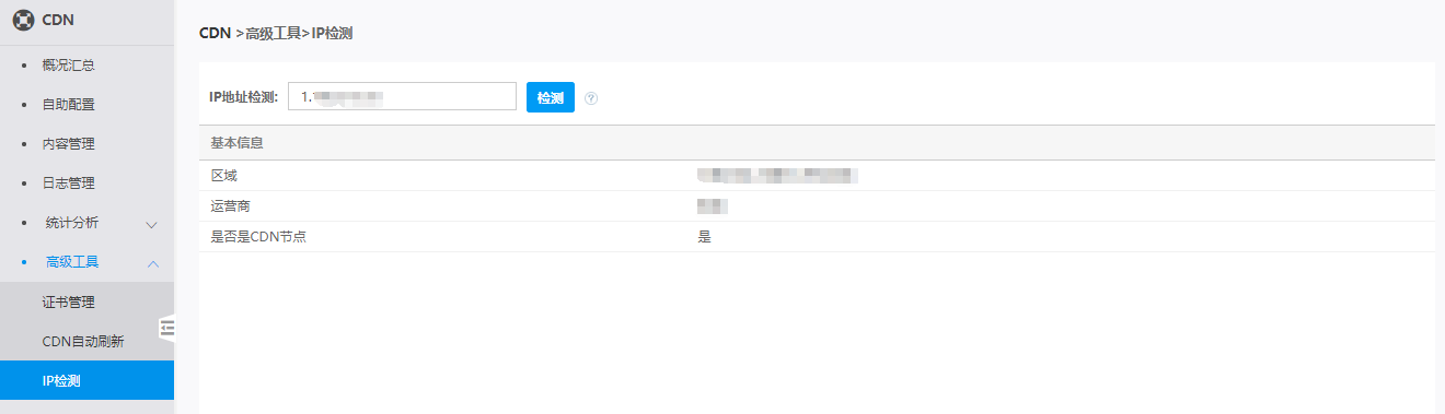 本文档主要介绍CDN控制台高级工具中的IP检测: