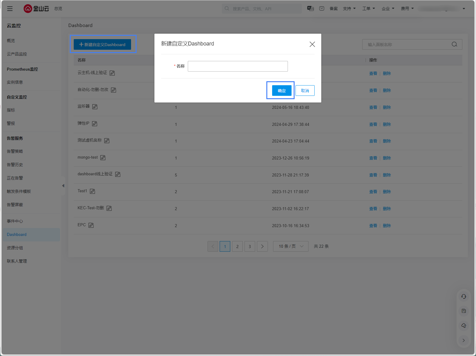 通过创建不同的自定义Dashboard,可区分不同分组下的云资源