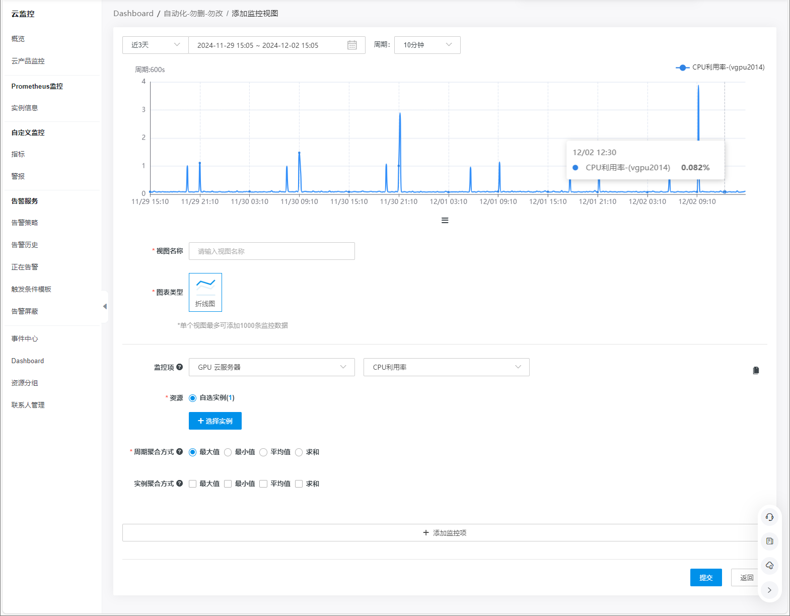 通过在自定义Dashboard中创建不同的监控视图,可灵活满足用户在不同监控场景查看资源性能状况的需求。不同的视图类别、视图拖拽放大等功能特性,为用户查看监控数据带来更多便利。