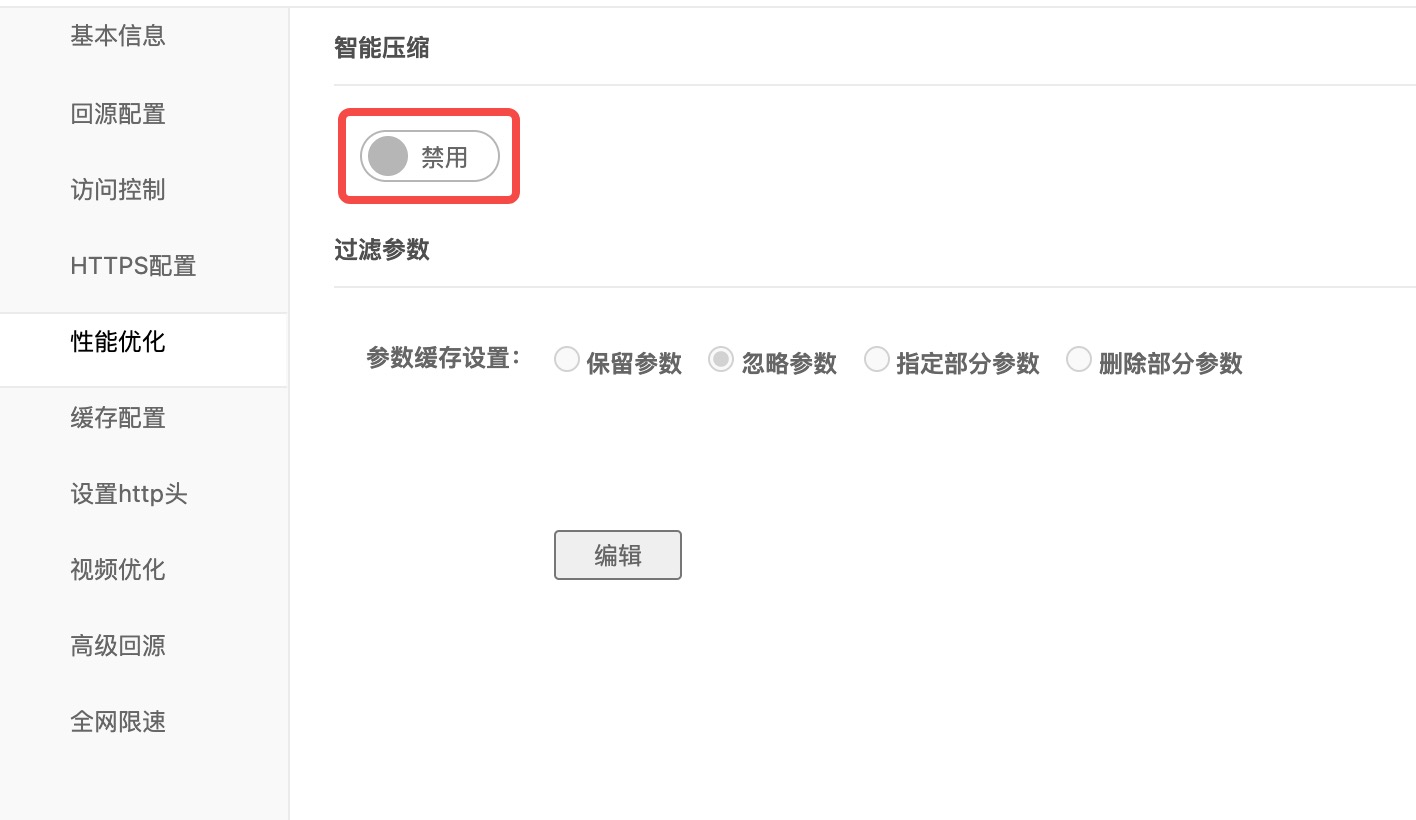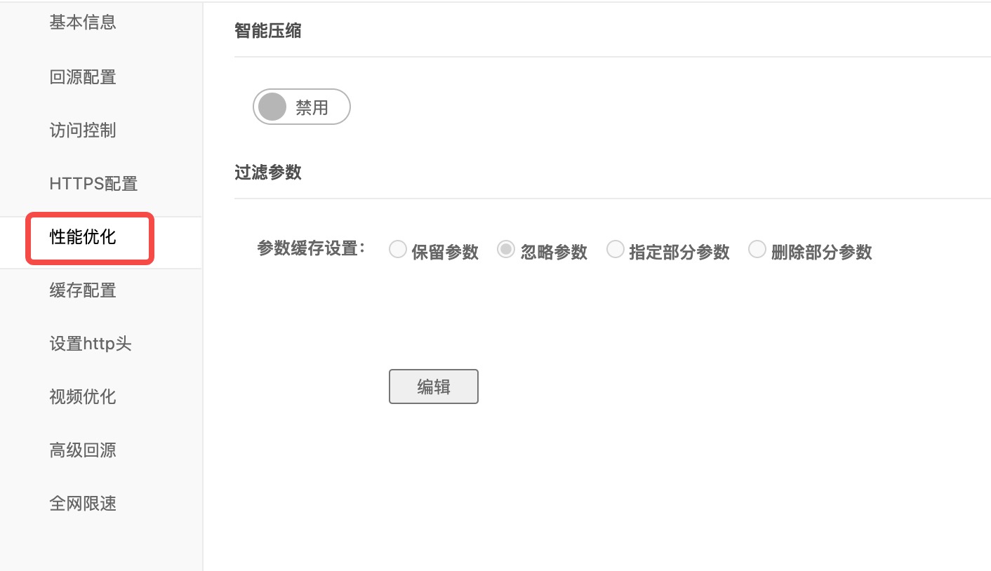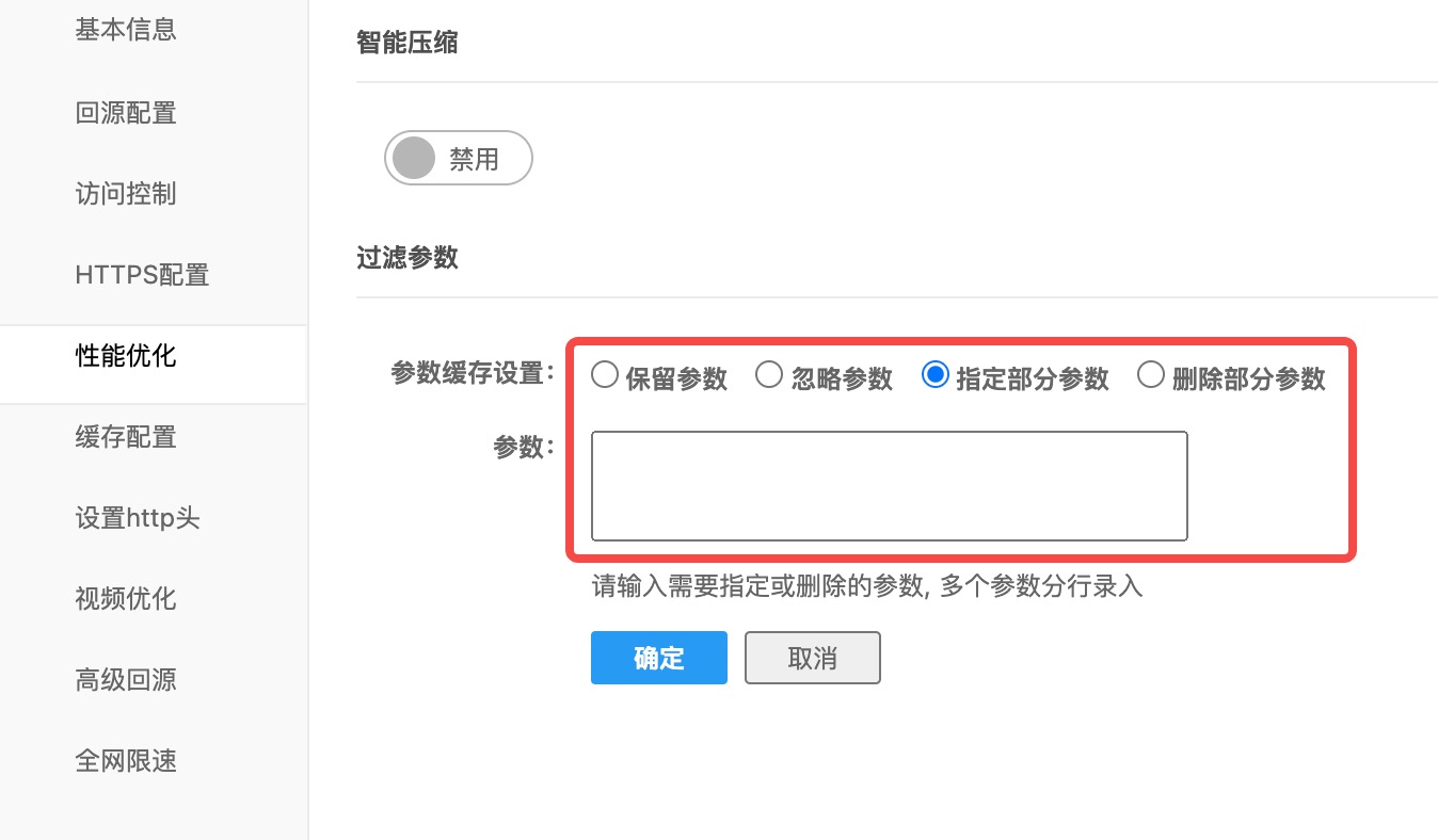 性能优化包含智能压缩、过滤参数2项配置。您可以通过设置加速域名的性能优化功能,缩小访问文件的体积、减少回源带宽,加速业务的效率、节省源站流量成本。