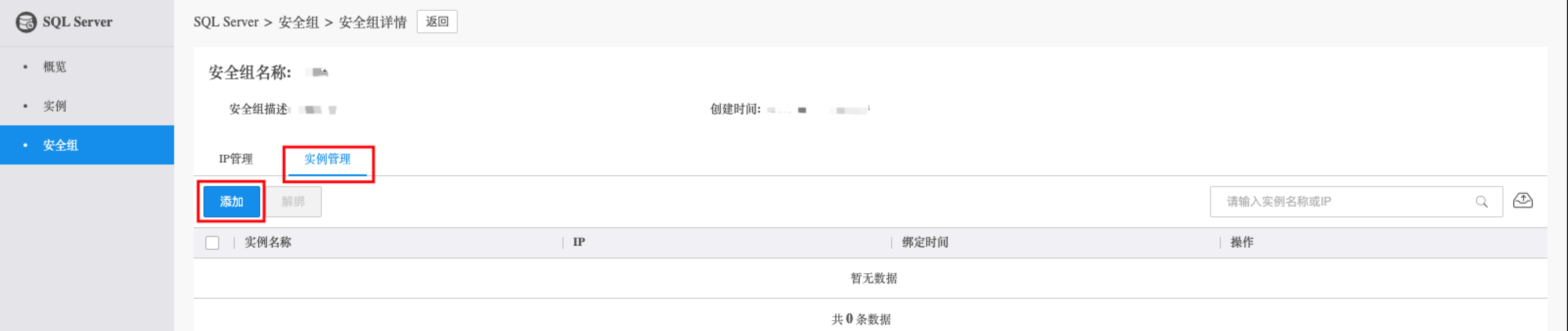 若您需要在此安全组中添加实例,在安全组详情页,点击实例管理,点击添加。