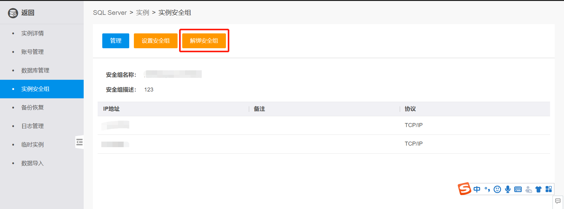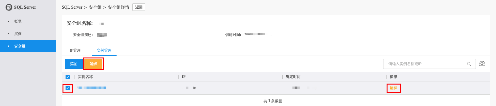 在安全组详情页中,勾选实例后,点击解绑即可,支持批量解绑。