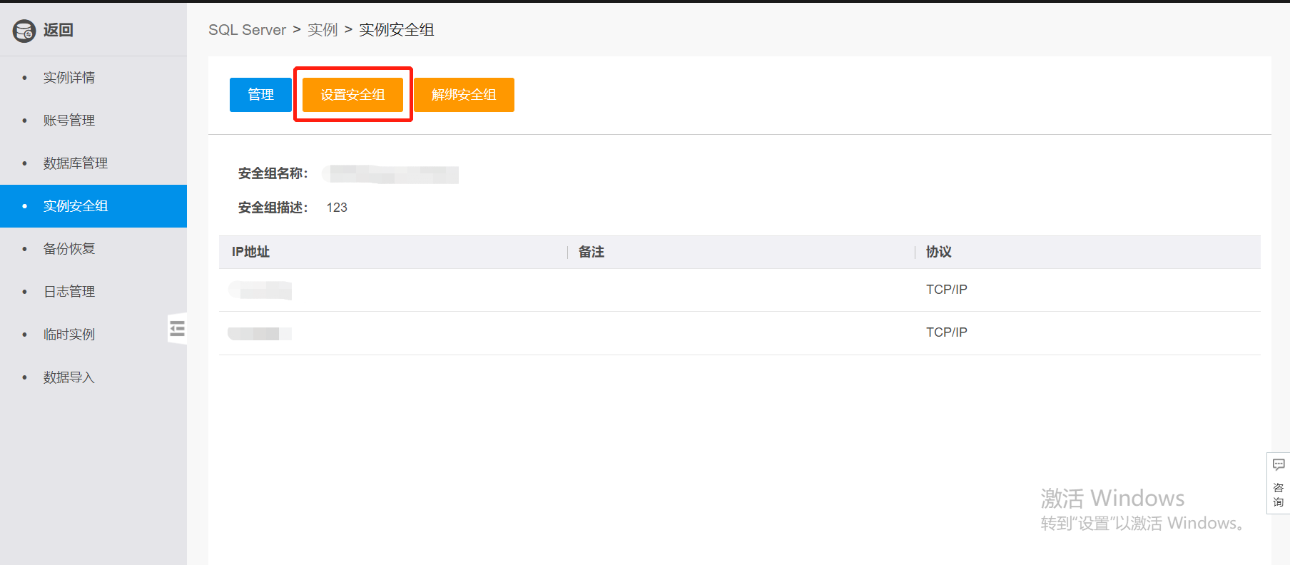 注意:此列表仅显示未绑定安全组的高可用、单机和只读实例,若想要添加已绑定安全组的实例,需用户进入目标实例已绑定的