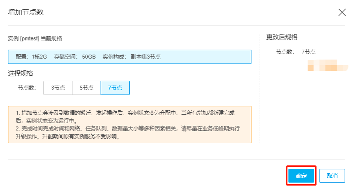增加节点的过程暂不支持同时修改原节点的配置,所添加的节点配置和原实例节点配置保持一致。