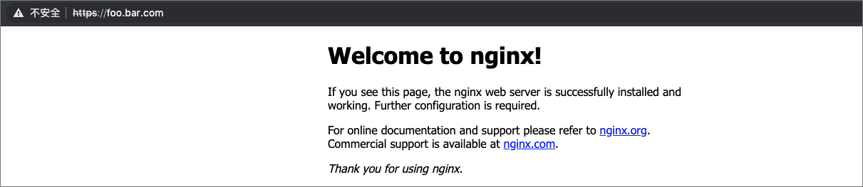 备注:这里我们将测试域名foo.bar.com解析到nginx-ingress服务的公网IP,可以在hosts文件中添加一条记录。
