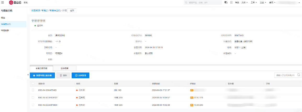 登录专属宿主机KDH控制台。