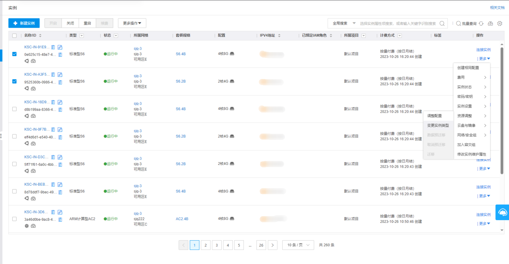 在实例列表中,找到想要变更类型的实例,并选择对应操作列的更多 > 资源调整 > 变更实例类型。